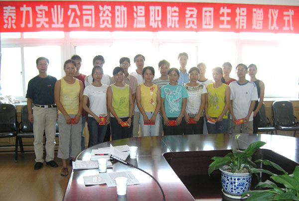 学院领导、泰力实业老总与我院贫困生合影