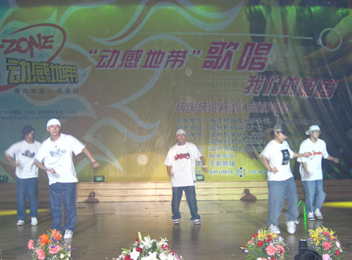 我院选送的两个节目——工商系严冰同学演唱的《美丽的笨女人》和由轻工学院陈新等人表演的街舞在晚上魅力四射,让现场增添了欢乐的气氛。我院学子的唱功和舞姿还得到了温州电视台和温州电台主持人的肯定。