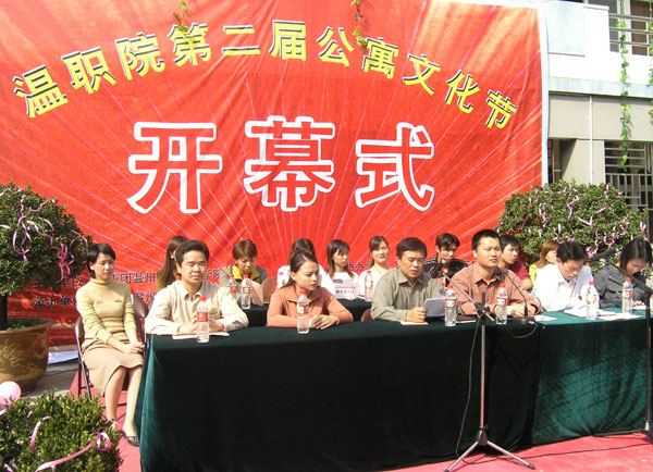 我院党委副书记倪集崇说,随着高校改革的深入,大学城建设理念的融入,高校后勤将全面实现公寓化管理。在新的后勤管理模式下,学生社区将会逐渐取代传统意义上的班级集体概念,将会形成以寝室为载体的,具有特色社区文化。因此,在高校举行公寓文化节是一项非常有意义的活动,同时也是贯彻三个代表重要思想、建设先进文化的具体实践,是丰富大学生业余文化生活、建设具有温职院特色的校园文化的一个重要载体和有效途径。公寓文化作为校园文化的一个重要组成部分,在培养和锻炼具有健全人格的现代化人才过程中发挥着越来越重要的作用。丰富和繁荣校园文化,既是高校文化建设必然要求,也是莘莘学子个人成长的共同要求。他在开幕式上希望全院师生积极踊跃地参加校园文化建设,把理想、信念、追求和聪明才智变成校园文化生活中最亮丽的风景线。