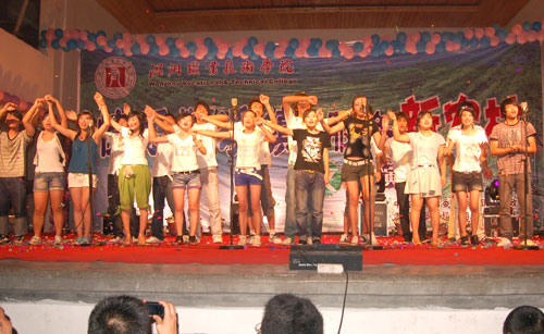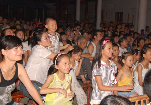 晚会上,大学生们表演了民族气息的舞蹈、把迎奥运的歌曲融合到晚会主题中,在乡村里“种”下了文化的种子。演员们纷纷拿出“看家本领”,载歌载舞,赢得顺溪镇父老乡亲阵阵喝彩声。台前,还有些“小脑袋”在人群中钻来钻去,小朋友们却特别衷爱大学生们表演的现代街舞,每到精彩处,几个小朋友现场照着动作自己也随着节奏不“比划”了起来。一位村民说:“现在农村里也不愁吃,不愁穿,但平时象这样的演出很少,大家都觉得普遍感觉在精神上少了东西。这次大学生们为我们送来了文化大餐,让我们很高兴。”