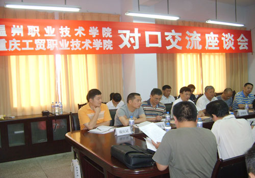 重庆工贸职业技术学院是我院西部对口支援的高职院校之一。该院位于三峡库区腹地、长江乌江交汇处的榨菜之乡--涪陵。我院于2006年3月与其签订了对口支援协议,在教学、实训室、干部队伍、师资队伍建设等方面进行对口合作,其中还实行“2+1”联合办学,即学生在重庆工贸职业技术学院完成两年学业后,第三年将转移到我院培养,我院负责协助重庆班学生在浙江省实现就业,以解决西部学生就业难的问题。目前,已经有两届重庆班学生在我院顺利毕业,两校合作前景看好。