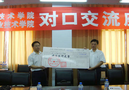 重庆工贸职院党委副书记、院长宋正富等热情接待了我院考察团,并简要介绍了学院的发展历史、干部队伍建设情况、办学特色以及招生就业、校企合作等方面的经验和做法。 倪集崇副书记介绍了我院国家示范高职院校建设情况以及干部队伍建设情况,向重庆工贸职院捐赠价值4.5万元,用于购买计算机改善其办公条件。随后,分处室及系部进行对口交流,并参观了校园。