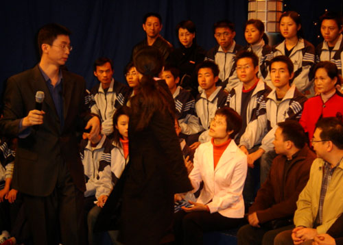 温州附属第一人民医院的护士长现场为同学们及其他观众演示了人工呼吸及急救。在现场学生干部踊跃发言,认真听讲。在节目录制完后,一位学生干部说:“这次录取节目让我学会了在平时遇难中如何去自救和他救。在录制节目的两个小时里,我们受益匪浅。”