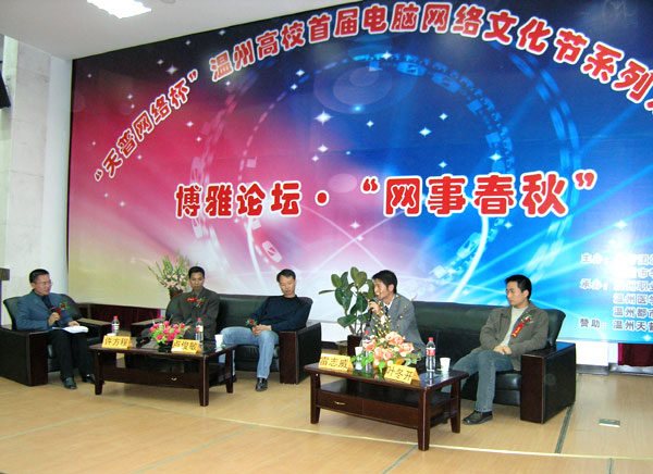 次论坛活动被纳入了“天普网络杯”温州高校首届电脑网络文化节的系列活动中。活动还将陆续开展网络文学原创大赛、大学生校园DV制作大赛、个人主页制作大赛等。
