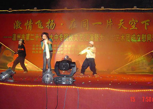 日前,由共青团温州市委员会和温州市学生联合会举办的温州市第21届大中专院校文艺汇演在温州温州育才小学举行。我院与温州大学城内其他几所高校均选送了节目参加了演出。我院派出了富有青春动感的校园歌手严冰和街舞组合共同演绎了一曲《SO CRAZY》,在舞台上充分展现了大学生的朝气和活力,赢得掌声一片。