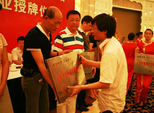夏晓军副院长为百强企业代表和大学生创业实习就业基地授牌