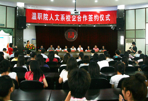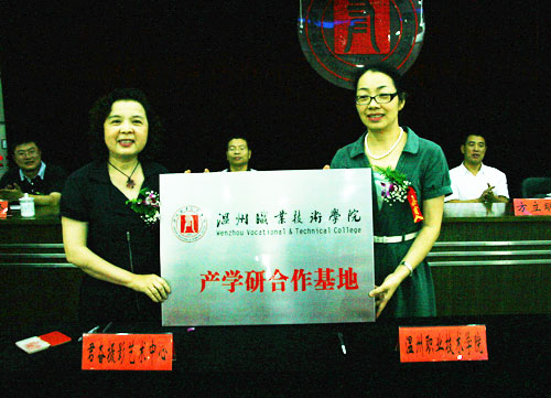 王向红副院长指出,我院目前已经与温州的35个行业协会、310多家民营企业开展“共建专业、共建课程、共建共享基地、共享人才资源、共育高技能人才、共同开展科技研究和服务”等以“六共”为主要内容的全方位、多层次校企合作,“让企业搬到校园,让车间进入课堂”,已经引入了27家企业入驻校园,与行业企业共建了12个省、市、院级科研机构,主动为企业企业提供科技研发和技术服务,去年的年科技到款额达545万元;还以校企互赢为合作原则,建成400多个运行有序的校外顶岗实习基地,使校内校外实训做到有机结合。
