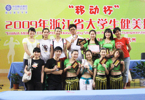 6月14日,由浙江省教育厅、省体育局主办,省大学生体协体操分会协办的2009“移动杯”浙江省大学生健美操锦标赛在树人大学体育馆落幕。我院健美操队了男子单人操第二名、女子单人操第二名、集体徒手操第三名。