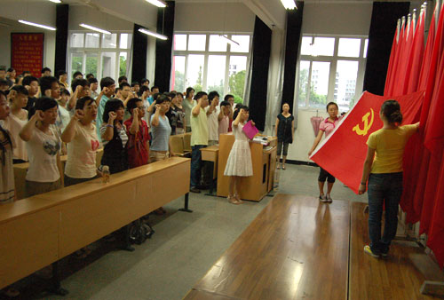 在党的第87个生日来临之际,6月26日下午,我院在3号楼学生党员之家举行了新党员入党宣誓仪式。13名教工和148学生党员举行在党旗前庄严宣誓,发挥党员的先锋模范作用,为共产主义奋斗终身。