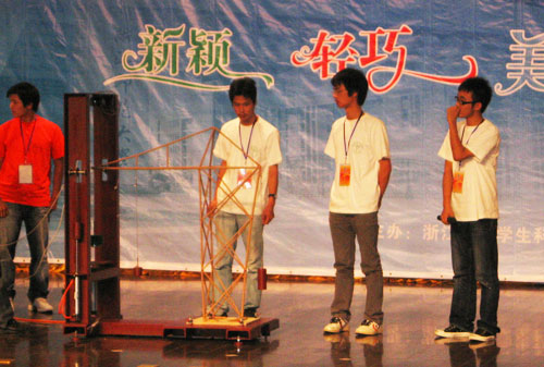 9月26日至27日,浙江省第七届“初阳杯”大学生结构模型设计大赛在浙江师范大学举行。本届大学生结构设计竞赛以“自立式塔吊结构模型设计与制作”为主题,我院建筑工程系首次组队参加此项赛事。经过近两个月的准备,由巨戎、吴听、李政宇三名同学组队合作建立的模型作品“长技”喜获三等奖。
