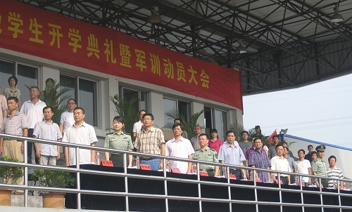 最后,陈光天书记为军训团授旗,标志着为期一周的军训工作正式启动,2009级的新生将用军训来为崭新的大学生活开幕。