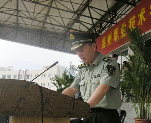 随后,学院教师代表、财会系主任李洁老师,在校生代表董晨露,新生代表陈仙锋,军训部队领导等先后作了发言。