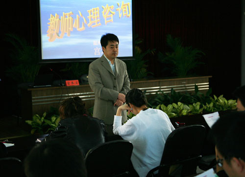 讲座采用互动的形式,辅导员纷纷提出了自己的心理困惑,有一老师谈到,由于辅导员工作繁忙琐碎,产生职业倦怠,自身都迷失了人生的方向,很难去指导学生建立良好的人生观世界观。宫老师说:“辅导员对职业定位不准,需要形成一个积极正确的自我观念,扬长避短,学会制定现实可行的、具有灵活性的自身发展目标。目标要具体化,试着将其分解成几个容易着手的小部分,然后合理地分配每段时间要做的事情,且根据自己的情况量力而行、循序渐进。”