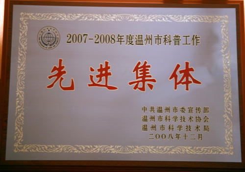 近日,在市委宣传部、市科协、市科技局开展的全市科普工作先进集体和先进工作者评选活动中,我院被授予“温州市科普工作先进集体”荣誉称号,这是市委领导对我院科研工作的高度肯定。