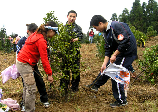 校园里的植树节环保活动是“春意盎然”,校园外的环保活动同样也是不甘落后。绿色环保护协会的另外一个小分队和校园起点登山协会的同学一起把植树队伍“挺”进了大罗山。他们参加了由温州意丹奴户外俱乐部组织的大罗山植树活动。同学们冒雨翻山越岭,一路鼓劲,尽管山高、坡陡、路滑,但困难阻止不了大学生们植树种绿的热情。经过2个小时的路程,同学们来到了山顶。在山顶,15名大学生随同浩荡的“植树队伍”一起种下了希望,把山顶一片荒地种上了茶花、桂花和女贞苗等植物。种好树后,同学们望着自己亲手摘下的小树苗,脸上挂满了笑容,纷纷要求和自己的小树苗合影留念。环保协会的一位同学说:“这次活动,虽然我们只种了这么几棵树,但如果能通过活动影响社会,让更多的人关注,让更多的人来参与,那么就是我们今天最大的收获了。”