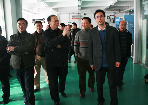 丁金昌院长陪同李步鸣局长一同视察了我院数控实训中心、精密模具重点实验室、制鞋生产性实训基地、服装生产性实训基地。