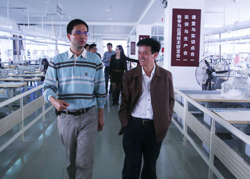 丁金昌院长陪同兄弟院校领导参观我院服装生产性实训基地