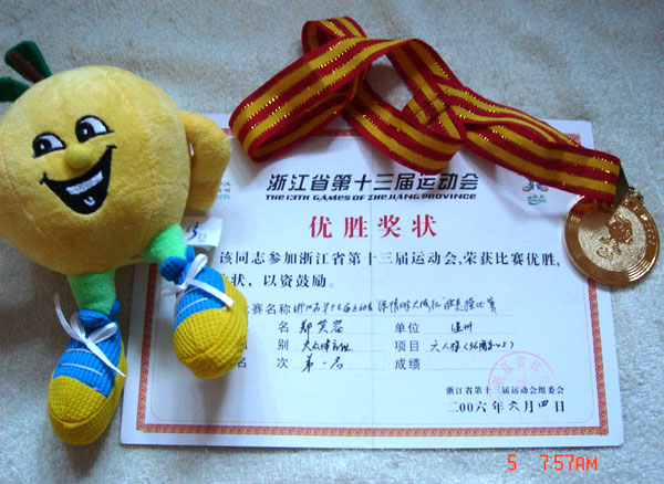 6月4日,浙江省第十三届省运会(大众体育部、行业系统部)健美操、健美比赛落下帷幕。我院郑笑容与李井平教师在比赛中也给学院传来了好消息,他们与兄弟院校——温州医学院、温州大学的四名女教师组成的温州代表队获得大众六人操(36周岁以上)金牌。