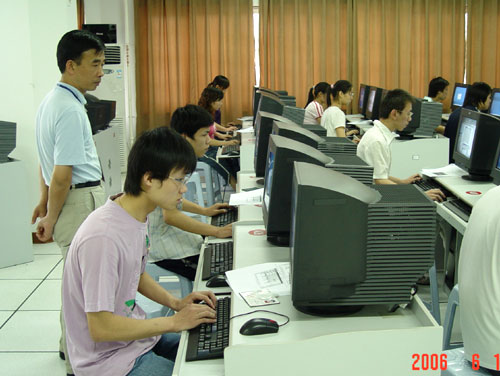 6月13日下午,教育部评估专家来到计算机系抽测学生专业技能。专家组王怡民教授、方华副教授在学院信息中心考察了该系学生的编程能力,从而来测试我院学生的基本技能掌握情况,共有30位同学参加了本次技能抽测。
