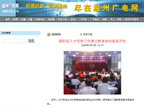 温州新闻网:《温职院"依托行业、产学结合"办学模式受肯定》