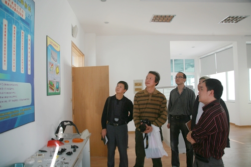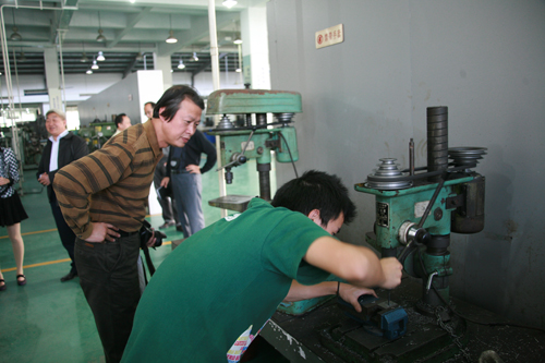 客人们参观我院的生产性实训基地