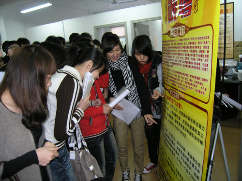 11月25日,温州职业技术学院校园里一日三场招聘会让2010届毕业生们着实开心了一把,而制造类企业争先恐后来前来设摊,提供岗位招聘应届毕业生,更让大学生们看到了“经济回暖”的迹象,就业情况相对乐观。