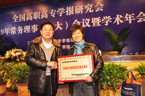 全国高职高专学报研究会理事长潘世东亲自为我院颁奖