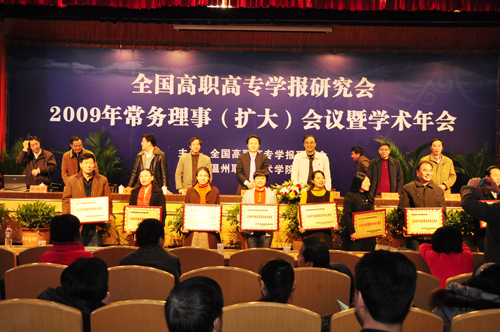 2009年12月18—21日,全国高职高专学报研究会2009年常务理事(扩大)会议在我院学术报告厅举行。作为全国高职高专学报研究会的一次盛会,来自全国高职高专院校的学报代表相聚在一起,交流办刊经验,研讨当前高职高专学报存在的主要问题与改革方向,共商高职高专学报发展大计。会议由全国高职高专学报研究会主办,温州职业技术学院承办。国家新闻出版总署办公厅综合信息处处长杜大力、中国高校自然科学学报研究会名誉理事长及出版界资深专家陈浩元、中国高校自然科学学报研究会理事长颜帅、中国高校自然科学学报研究会秘书长郑进宝、温州市文化广电新闻出版局副局长赵松涛、温州市社会科学联合会常务副主席洪振宁和来自全国高职高专110多所院校的140多位学报代表出席了本次盛会。可喜可贺的是,本次大会推举了温州职业技术学院等10家单位为副理事长单位。