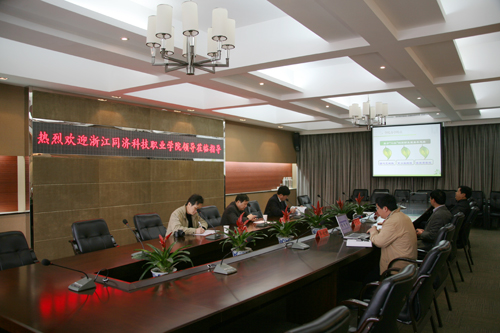 4月16日,浙江同济科技职业学院书记丁坚钢一行3人来我院考察交流,受到我院党委书记陈光天及相关部门负责人的热烈欢迎。