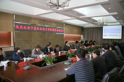 为了促进校际之间交流,深化“三校联盟”进程,由宁波职业技术学院党委书记、执行院长苏志刚和副院长张学库一行12人于3月31日再次来我院参观考察,交流示范建设中的宝贵经验。我院丁金昌院长和王向红副院长代表学院对兄弟院校的到来表示热烈欢迎。