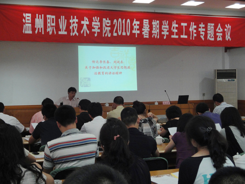 会议期间,与会代表还分组围绕《温州职业技术学院关于深化学风建设的意见(讨论稿)》展开热烈讨论,从不同角度、立场出发,各抒己见,对学院学生工作提出了许多宝贵的意见和建议。随后,余蓉、林香港等各小组召集人先后对各小组的讨论内容作了简要汇总。会上还对2009-2010学年优秀思政工作者进行了表彰。