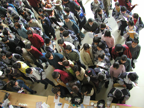 踊跃的人群里一层、外一层,围得水泄不通