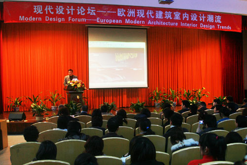 2月23日,著名设计大师、奥地利AREA设计有限公司总裁爱德华特•彼特•麦雅先生应邀走进我院校园,在学术报告厅举行了一场《现代设计论坛》,让我院家具设计、环艺和建筑装饰专业的大学生受益匪浅,温州室内设计师协会会员、温州大学艺术学院环艺专业学生以及温州设计界的教师、知名人士纷纷前来聆听讲座。副院长王向红出席讲座,并致欢迎辞。