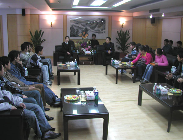 在会客室,同学们与德力西公关服务处处长进行了交流