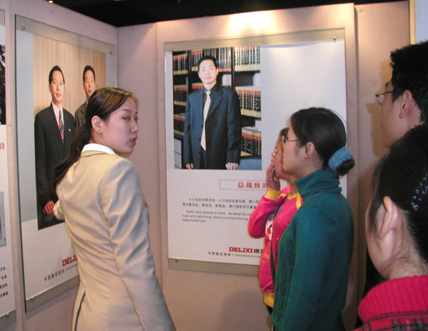 在德力西集团,同学们受到了德力西公关服务处胡锡圣处长热情地接待。同学们通过观看宣传片和参观德力西产品展示区,了解了德力西发展的历程以及所形成的独有的企业文化。在与胡锡圣处长的交流中,同学们还更加深刻地了解到德力西以及其他企业目前对人才的需求状况以及企业对人才素质的要求。