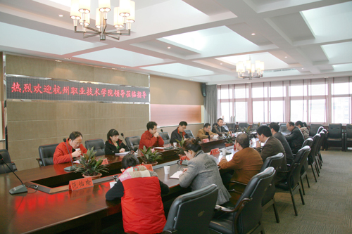 12月11日,杭职院在我院挂职锻炼教师的汇报交流会在我院行政楼三楼会议室举行,杭职院院长叶鉴铭和我院院长丁金昌出席了本次会议。