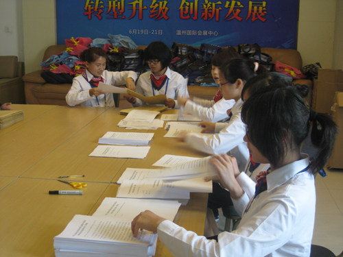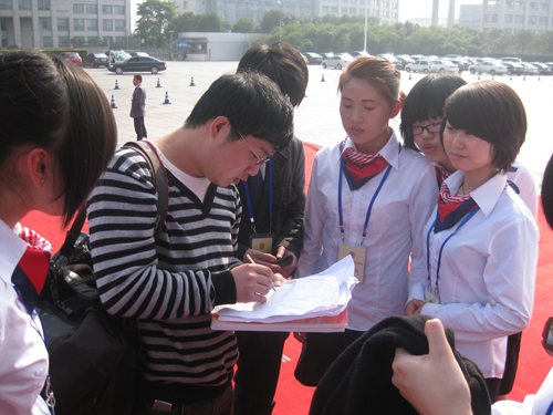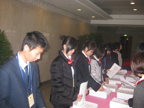 到达报到地点后,同学们在会议厅参加了工作人员的动员会议。在声声激励中,大家都是信心十足,斗志昂扬。会后,前来实习的人文学子被分成简报组,后勤组,会务组与提案,进行着各自的工作。