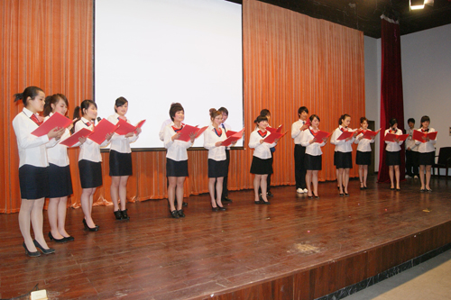启动仪式在全体与会人员齐唱《歌唱中国》的歌声中拉开序幕,会上,院学工部部长、学生处处长、团委书记蔡后界对“说学读唱”经典主题教育活动的工作安排和具体项目做了简要介绍。随后,举行了简短的授书仪式,院党委副书记倪集崇向各系党总支书记授书,以此勉励全院学生积极投身“说学读唱”经典主题活动。倪书记在启动仪式上发表了重要讲话,他指出,“说学读唱”经典主题教育活动,对于促进形成优良的校风学风,深入推进校园文化建设,提升当代大学生人文素质都具有十分重要的意义,对如何扎实有效地开展主题活动提出了要求和希望,他要求各系要将“说学读唱”经典主题教育活动,与系部其他学生教育工作有机结合,尤其是要与学习型组织创建、校园文化建设等工作相结合,务求工作实效;他同时勉励同学们要认真扎实学习经典,做到学思结合,使每位同学都能从主题教育活动中有所收获。