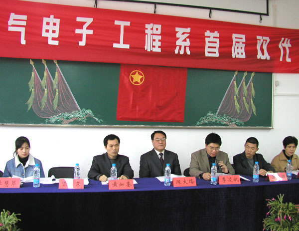 3月27日上午,电子电气工程系在4号楼召开了首届团员及学生代表大会。学院学生处处长季凌斌、团委指导老师吴建明,电气系主任陈大路以及系书记黄加銮都出席了大会。应邀参加此次会议的还有计算机系书记余凤玉和财会系书记张兆淼。
