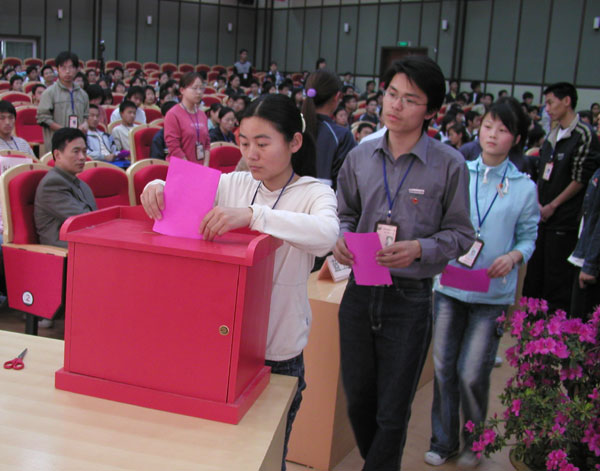 大会由院团委吴建明同志主持。团委书记季凌斌同志代表共青团温州职业技术学院第一届委员会作题为《努力开创温州职业技术学院共青团工作的新局面》的工作报告。报告回顾了三年以来的团工作,并就今后三年的团工作提出了设想。报告指出,今后我院团工作要紧密围绕学院育人和创文明单位中心工作,深化明德修身工程与青年人才工程,推进大学生素质拓展计划,倡导科学精神与人文精神,培育科学、高效与人文关怀相统一的校园文化,努力构建与高等教育改革和学院发展相适应的工作新局面,团结带领广大团员青年勤奋学习,求真务实,与时俱进,开拓创新,甘于奉献,为把我院建设成现代化一流的 职业技术院校而奋斗。团员代表和学生代表充分发扬主人翁精神,本着认真负责的态度,审议并通过了由季凌斌同志代表第一届团委和由戴安羽同学所作的工作报告,回顾总结了过去的工作,提出了今后的工作目标和任务。选举产生了共青团温州职业技术学院第二届委员会和第二届学生委员会,季凌斌、吴建明、黄淼、洪炜、潘玲珍等17人当选为院团委第二届委员会委员;戴安羽、叶敏、张金灵等13人当选为第二届学生委员会委员。