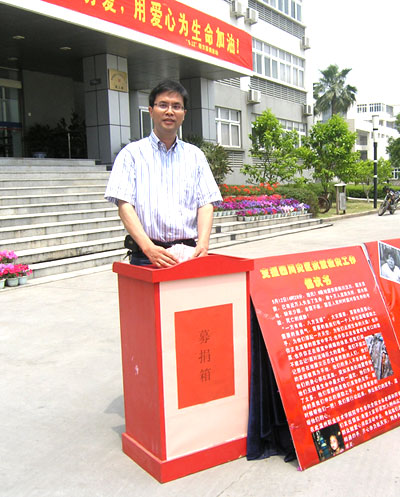 上午10:30,全院教职工集中来到行政楼前为四川地震灾区献爱心。院领导带头募捐,各部门、系部、职工个人纷纷将善款投到募捐箱里。在短短半小时里,据不完全统计,全院教职工共募捐款总额近20万元人民币。