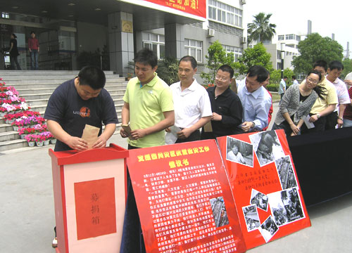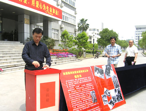 近日来,在中华大地上有一曲“情系地震灾区”爱心之歌在广为传唱,全国人民积极为灾区捐款捐物。5月13日上午,我院继5月12日捐款活动发起之后,在教职员工中又掀起捐款赈灾的高潮。学院工会、组织部纷纷发出倡议,号召全院广大师生员工、党员干部伸出援助之手,积极为灾区人民奉献爱心。