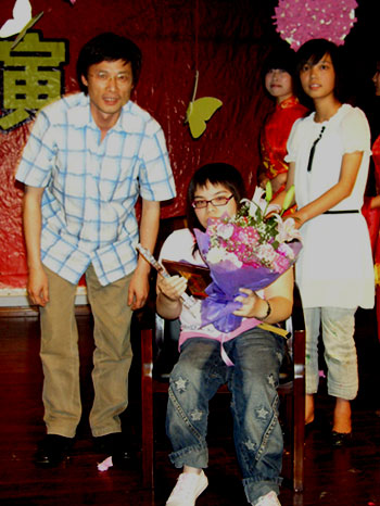 夏晓军副院长俯身为残疾学生颁奖并合影