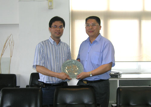 座谈会上,丁金昌院长代表学校对番禺职业技术学院交流访问团一行表示欢迎,并向客人详细介绍了学校的基本情况以及示范院校建设的基本情况,特别介绍了学院的示范建设的理念、生产性实训基地的建设情况。会上,番禺职院张连绪院长还向我院赠送了纪念品。