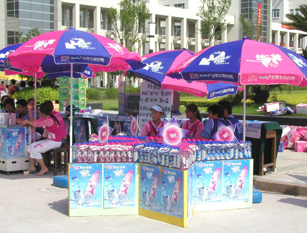 此次展销会共设50多个摊位,展卖摊位全部由由各班、寝室、社团组织组成参展商进行自主经营,平时课堂上的学子在展销会上纷纷当起了“摊主”。此次展销会和往年一样吸引众多商家前来做生意,摆出的商品琳琅满目,应有尽有。其中大摊位——“他+、她-”饮料更是做足了宣传。摊位的摆设独树一帜。据悉,该饮料生产商还为本次展销会提供友情赞助。届时,展销会的闭幕晚会就以“他+、她-”冠名。