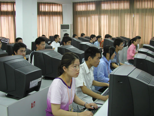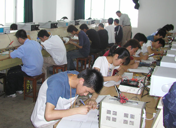 在金工车间,有同学挥汗如雨,加工机械产品;在服装裁剪室,有同学坐在缝纫机前,赶制衣服;在计算机房,有同学在冥思苦想,创作电子作品;在电工检测室,有同学在忙着检测电路;在模拟餐厅,有同学在斟茶倒酒;在艺术表演室,有同学在用舞姿展现艺术的魅力……