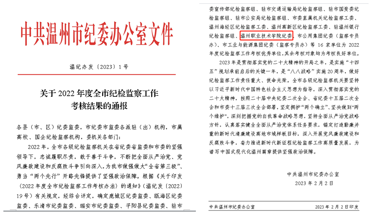 我校纪委连续三年获温州市...