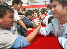 大学生摆擂比手劲