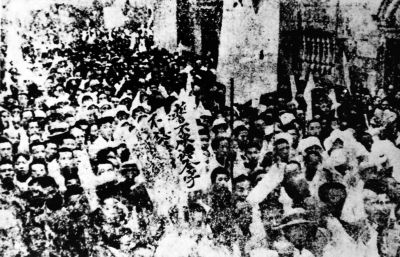消息传到国内,立即在人民群众中,首先是在知识分子和青年学生中激起强烈的愤慨。5月4日下午,北京大学等13所大中专学校的学生3000余人到天安门前集会,五四运动就此爆发。从5月初到6月初,这场运动以学生为主。6月5日,上海工人自动举行罢工,支援学生的反帝爱国斗争。高潮时达到10多万人。上海商人也举行罢市。工人罢工的浪潮迅速扩展到全国20多个省和100多个城市。中国工人阶级开始以独立的姿态登上政治舞台,使五四爱国运动突破学生、知识分子的狭小范围,发展成为全国范围的群众性反帝爱国运动。6月28日,在全国人民的巨大压力下,中国代表没有出席和会的签字仪式。