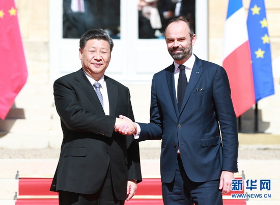 3月26日,国家主席习近平在巴黎总理府会见法国总理菲利普。 新华社记者 姚大伟 摄